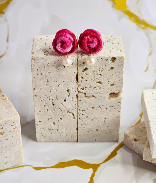 Rose with Freshwater Pearl Micro-crochet EarringsRegular price $26.00 USDRegular priceUnit price / per-
