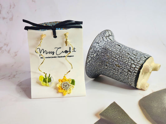 Micro-crochet Sunflower & Butterfly Twirl Earrings
