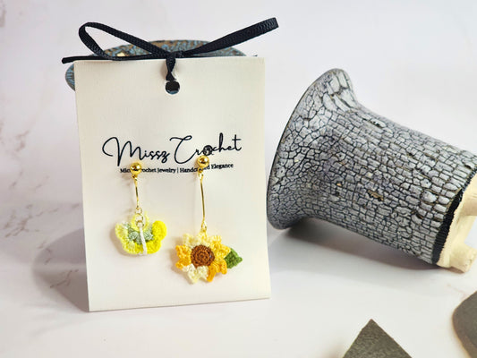 Micro-crochet Sunflower & Butterfly Dangle Earrings
