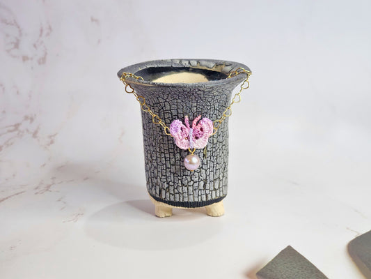Micro-crochet Pink-Purple Butterfly with Pearl Heart Bracelet