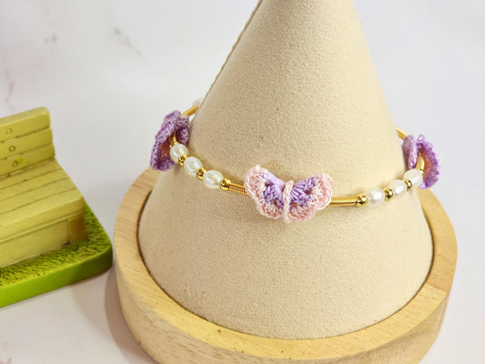 Micro-crochet Pink-Purple Butterflies with Pearls Bangle
