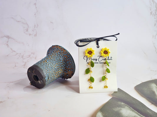 Micro-crochet Sunflower with Ombre Leaves Earrings
