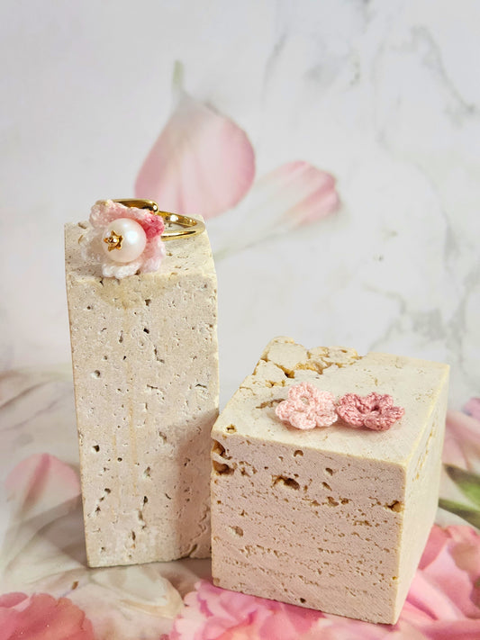 Pink Micro-crochet Sakura Blossoms with Pearl RingRegular price $26.00 USDRegular priceUnit price / per-
