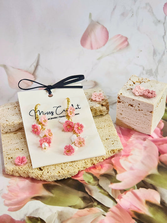 Pink Sakura with Pearls Micro-crochet Chandelier EarringsRegular price $33.00 USDRegular priceUnit price / per-